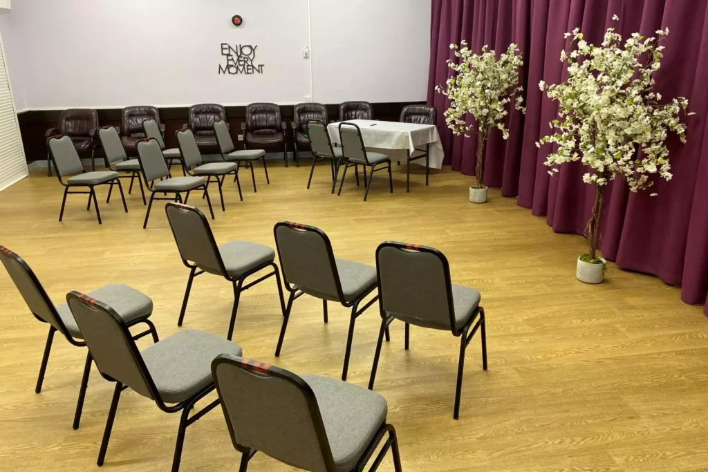 Centrecom is situated near the Central Library in Central Milton Keynes. The main meeting hall is approximately 15m by 7m (48ft by 24ft), will seat 80-100 people and is suitable for the disabled. Tables and chairs are available. The kitchen is equipped with crockery, an oven, fridge microwave, kettles and a water heater. The building is fitted with an alarm system connected to a central monitoring station. A small car park is available during daylight hours.